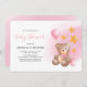 Convide a família e os amigos a celebrarem a chegada futura da sua linda bebê recém-nascida. Estes bonitos convites para bebês apresentam um fundo branco comum, um ursinho de aquarela, balão rosa, estrelas douradas e uma garrafa de bebês, além de um modelo moderno de chá de fraldas que é fácil de personalizar.