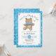 Design de chá de fraldas de ursinho bonitinho, de cor digital e desenhado à mão. Elementos pintados por Valarie Wade. Perfeito para qualquer momento do ano. Texto ajustável. Urso de pelúcia bolinhas azul é um chá de fraldas chamado "menino". Clássico