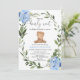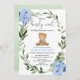 Convites Teddy Bear Blue Greenery chá de fraldas floral