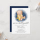 Personalize facilmente este belo e elegante convite de chá de fraldas para bebês. O convite apresenta um adorável ursinho de pelúcia segurando uma estrela amarela em frente a um fundo azul-escuro com cor d'água. As palavras dizem "podemos esperar muito". Procure itens correspondentes no compro.