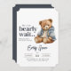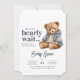 Convite ao Chá de fraldas "Barly Wait" - Modelo editável Comemora a chegada de um pequeno com este adorável convite ao chá de fraldas com o tema do ursinho de pelúcia! Apresentando uma encantadora ilustração de ursinho de pelúcia e elegante tipografia, este convite é perfeito para uma celebração acolhedora e na moda.