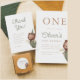 Um design bonitinho e mínimo, com "um" em letras séricas clássicas impressas no topo da placa. Abaixo, o nome do aniversariante está em letras verdes. Os detalhes da festa estão alinhados à esquerda, com um ursinho pintado à mão, vestindo um chapéu de festas, macacos verdes, e segurando uma pequena bandeira à direita. Cartões invertem um padrão de estrela fofo contra um fundo castanho quente. Ideal para o piquenique do ursinho de pelúcia, o primeiro aniversário da varinha e temas da floresta. Exibir a coleção vinculada nesta página para itens correspondentes ou visitar nossa loja para obter mais convites de festas de aniversários.