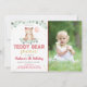 Esta design adorável mostra um urso com balões, eucalipto verde e falsos confetti de ouro.