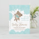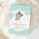 Personalize este maravilhoso convite para Chá de fraldas do Urso de Teddy apresentando uma ilustração desenhada pela mão de um bonitinho ursinho de pelúcia marrom voando com balões azuis-claros. Este design é definido como um modelo para sua fácil personalização on-line, e também o fundo branco pode ser alterado para qualquer outra cor.