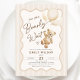 We can bearly wait gender neutral baby shower invitation. Teddy bear themed design in beige and cream neutral colors. Features trendy wavy frame, watercolor cute teddy bear, balloons and script font. Perfect for an elegant baby shower celebration. Personalize with your own details. Printed Zazzle invitations or instant download digital printable template.