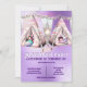 Um lindo gráfico ai de aquarela com duas fantasias realistas em 3D inspirou tendas de árvores com faixas horizontais em tons pastéis de rosa, cinza e branco contra um fundo brilhante roxo falso que tem pequenas luzes cintilantes rosa e branca. Cada uma das tendas tem uma pequena fada enfiada num saco de dormir. Suas asas se espalham e elas estão dormindo dentro solitário com os coletes. Personalize os modelos de texto roxo e branco editáveis para atender às suas necessidades. Estas são ideais para a sua filha se ela está tendo um "tema de fada" fantasia inspirada em fadas, glam, sonâmbulo / festas de pijama para amigos celebrarem seu aniversário.