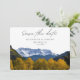 Capture a beleza de Telluride e convide seus convidados em estilo com esta foto, salve o convite de data. A frente mostra uma fotografia impressionante, dando o tom perfeito para o dia do seu casamento. Adicione sua própria foto ao verso e personalize o texto para torná-lo seu.