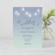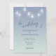 Tema Casual de Casamento Azul Suave e Convite Branco desenhado com luzes de mason-jar brancas, sobre fundo azul macio. O texto inclui: Nomes da noiva e do noivo, data de casamento, hora, localização e recepção. Para personalizar, basta inserir seus detalhes em nosso modelo fácil, substituindo o texto de exemplo. Certifique-se de ver a coleção completa de Tema Branco e Azul para Casual de Casamento para cartões e acessórios correspondentes. Este Convite está disponível em Impressão e Download.