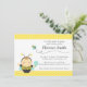 Celebre o chá de fraldas em homenagem à múmia do ser com este convite de chá de fraldas de abelhas em amarelo e preto. Design inclui uma adorável abelha voadora, um padrão de mel hexágono, um bebê bonitinho em roupa de abelhas com uma flor azul e texto espirituoso que toca no tema da abelha como "Mamãe-a-Abelha". Personalize facilmente com os detalhes do seu partido.