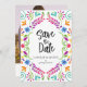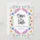 Esta foto atraente salva-a-data do cartão apresenta um tema vibrante da Fiesta mexicana. Envie este cartão para sua família e amigos para espalhar a notícia sobre seus futuros núpcias. Essas placas são impressas com cores ricas e designs em negrito para tornar sua data de salvamento inesquecível. Correspondência de itens em nossa loja Design do Partido Cava