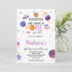 Prepare-se para se divertir com este adorável convite de aniversário para astronautas roxos! Apresentando uma menina astronauta, foguete e planetas em uma galáxia roxa sonhadora, esta design editável é perfeita para as meninas que amam o espaço. Personalize facilmente o nome, a idade e os detalhes da festa usando as ferramentas fáceis de personalização da Zazzle. Ideal para astronauta, foguete ou celebrações espaciais externas.