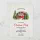 Convite de festas de Natal com um tema de Natal bonito e caprichoso. Um trailer aconchegante, decorado para o sorteio de Natal entre algumas árvores de neve e pinheiros.