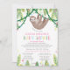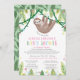 Celebrar a mãe a ser de longe com estes bonitinhos convites para chuveiros de bebês de preguiça - desenhados para um chá virtualmente ou socialmente distanciado! Edite facilmente o texto para ajustado do evento. Com uma adorável mãe pintada à mão e preguiça-bebê abraçando na selva. Vinhas cinzentas, flores rosa-doces e amarelas e folhas de selva verde macia decoram o fundo. O fundo tem um padrão de folha verde claro e escuro.