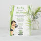 Tema panda e bambu em preto, branco e verde. Bebê menino em fralda com estampa de bambu com chinelos de panda e gravata borboleta, segurando um ursinho de pelúcia panda. Perfeito para chá de bebê ou aniversário.