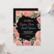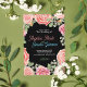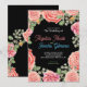 Fornos de casamento rosas, limpos, modernos e simples, apresentam flores rosas rosa-rosa e folhas verdes feitas com caneta marcadora. Uma cor rosa-rosa marcada para a atmosfera fez convite para casamento. Convite rosa cor-de-rosa de versão preta.