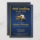 Faça uma declaração com o nosso simples e refinado convite de aniversário 50º. Perfeito para o entusiasta do golfe que começa uma nova década, nosso design combina afinal classe e capricho. Os sotaques do ouro complementam o sofisticado fundo azul escuro, enquanto o gráfico de um carrinho de golfe adiciona um toque lúdico. No verso você pode escrever informações adicionais. Simplesmente apague o texto se você não quiser. Todo o texto é fácil de personalizar.