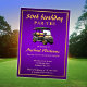 Faça uma declaração com o nosso simples e refinado convite de aniversário 50º. Perfeito para o entusiasta do golfe a começar uma nova década, o nosso design combina perfeitamente a classe e o capricho. Os sotaques do ouro complementam o sofisticado fundo roxo escuro, enquanto o gráfico de um carrinho de golfe adiciona um toque lúdico. No verso você pode escrever informações adicionais. Simplesmente apague o texto se você não quiser. Todo o texto é fácil de personalizar.