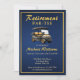 Faça uma declaração com nosso convite de festas de aposentadoria simples, mas refinado. Perfeito para o entusiasta do golfe, dando adeus ao mundo corporativo, nosso design combina perfeitamente a classe e o capricho. Os sotaques do ouro complementam o sofisticado fundo azul escuro, enquanto o gráfico de um carrinho de golfe adiciona um toque lúdico. No verso você pode escrever informações adicionais. Simplesmente apague o texto se você não quiser. Todo o texto é fácil de personalizar.