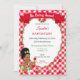 Convites Tema de Morango Bebê Menina Xadrez Vermelho Verde