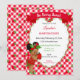 Convites Tema de Morango Menina Gingham Vermelho Verde