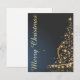 O cartão de Natal apresenta uma elegante árvore de Natal ouro feita de estrelas cintilantes sobre um fundo azul escuro. A inscrição "Feliz Natal" no ouro, a letra curvada circula estilhosamente do design festivo. 🎄 ✨