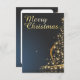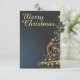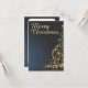 O cartão de Natal apresenta uma elegante árvore de Natal ouro feita de estrelas cintilantes sobre um fundo azul escuro. A inscrição "Feliz Natal" no ouro, a letra curvada circula estilhosamente do design festivo. 🎄 ✨