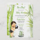 Tema de panda e bambu em esquema de cores preto, branco e verde. Bebê menino em fralda com estampa de bambu com chinelos de panda e gravata borboleta, segurando um ursinho de pelúcia panda. Perfeito para chá de bebê ou aniversário.