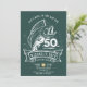 50º aniversário de ideias para os homens: uma pesca temida pelo 50º convite de aniversário, com o número 50 em letras grandes e ousadas e um desenho de linha de um peixe saltando da água. Esquema de cor verde-azul-aqua e amarelo-ouro. Um moderno e elegante convite de aniversário 50º para o seu marido, namorado, parceiro, avô, tio etc.