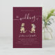 Código QR do Dinossauro Convite para Casamento Borgonha e Creme de Marfim | Elegante e divertida T-Rex Bride e Groom Design Deliciem seus hóspedes com este convite de casamento de um dinossauro que combina encanto lúdico com elegância moderna. Apresentando uma ilustração original de cor d'água T-Rex noiva e noiva da artista Catherine Sweetman, esta design é perfeita para casais que amam dinossauros, temas jurássicos ou artigos únicos de papelaria de casamento. Este design funciona bem em qualquer estação, incluindo o outono e o inverno O rico fundo de burgundy, combinado com a caligrafia do creme de marfim, cria uma vibração sofisticada, mas reluzente, ideal para as celebrações rústicas, boho, modernas minimalistas ou quic ao ar livre. Recurso de código de QR conveniente: este convite inclui um código de QR digitalizável incorporado, fazer simples para os hóspedes acessarem instantaneamente seu site de casamento, formulário de RSVP, mapa de locais, registro de presentes ou agendamento. Chega de placas RSVP perdidas apenas aponte, digitalize e conecte-se! Recursos e benefícios trabalho de arte de casal de dinossauro original Encantando noiva de T-Rex e praticidade de código de QR de design de cor aquosa para acesso rápido a RSVP, mapas, registro e mais paleta de cor de Na moda Borgonha com script de creme de marfim para a elegância de eterno Totalmente personalizável modelo. Adicione facilmente nomes, data de casamento, localização e mensagem pessoal Perfeito para fãs de dinossauros, casamentos inspirados na natureza e casais não tradicionais Funciona lindamente para casamentos quirks, temidos, rústicos ou modernos Torne seu grande dia inesquecível com um convite de casamento que é tão único, funcional e divertido.