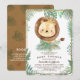 Convite para Chás de fraldas de Leão Super Bonito - Ele é o rei da selva e, em breve, o rei de você em casa e seus corações! Um pequeno rei está a caminho. Comece a comemorar do jeito certo com nosso convite muito bonito. Apresentando um bebê rei feio cercado por novas folhas verdes da selva tropical. A parte traseira da carta tem uma textura de cartolina falso com um sutil padrão verde de folha. Perfeito para um convite de chá de fraldas. Raio!