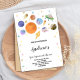 Jogue uma cesta de aniversário cósmica com este vibrante convite aos planetas espaciais! Apresentando um conjunto colorido de planetas, estrelas e um foguete posicionado sobre um fundo de galáxia, este design editável é perfeito para jovens entusiastas do espaço. Personalize facilmente o nome, a idade e os detalhes da festa usando as ferramentas de personalização da Zazzle. Excelente para astronauta, foguete ou festas temáticas do sistema solar.