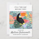 É uma Festa de aniversário de "Duas Capas". Um tema de festa de aniversário original para a comemoração do segundo aniversário do seu filho. Um pássaro tucano sobre um padrão tropical colorido. Personalize os detalhes da festa na frente e no verso deste convite.
