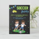 Convide seus hóspedes com este convite de aniversário legal com dois garotos bonitos jogando futebol contra um fundo de quadro. Basta adicionar os detalhes do seu evento neste modelo fácil de usar para torná-lo um convite de tipo único. Sacudir a carta para revelar uma bela textura de grama verde na parte de trás da carta.