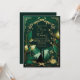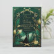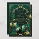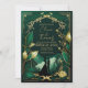 Um convite de casamento no tema romântico com cores verdes e ouro.