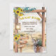 Uma bela ilustração com aquarelas, com um emblema com belos galhos encarando você contra um fundo paisagístico que tem um quadro de madeira com verde, girassóis e um letreiro que diz "salve a data" e "a caça acabou". Uma lanterna brilhante solteiro pendura de trepadores crescendo no arco. Personalize os modelos e não se esqueça de excluir o modelo extra na parte traseira do convite se ele não for necessário.