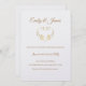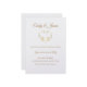 Este convite para o casamento é mostrado em um layout clássico em um fundo branco mostrado em uma opção de papel de Peal Shimmer. Selecione o papel escolhido. Rico espiralado gráfico cardíaco a cores Douradas. Nomes de casal realçados em uma cor de Ouro no topo. Texto corporal mostrado em Ouro por baixo do coração. Personalize este item, retirando o texto do exemplo e colocando suas informações nele. Imagem de ações.