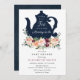 Hora do chá com a mamãe. Celebre a mamãe de estar com um chá de fraldas temático de chá. Apresentando um bule de chá azul marinho e florais Borgonha e cor-de-rosa com verde-água. Personalize com suas informações para a nova mãe. Clique em "clicar para personalizar mais" para alterar o estilo, o tamanho ou a cor da fonte.