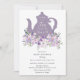 Hora de tomar chá com a mãe. Celebre a mamãe para estar com um chá de fraldas de chá. Apresentando um bule de chá roxo e flores de lavanda e cor-de-rosa com verde-água. Personalize com suas informações para a noiva. Clique em "clicar para personalizar mais" para alterar o estilo, o tamanho ou a cor da fonte.