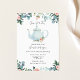 Está na hora do chá com a noiva! Este convite para chás de casamento, tema divertido, para o chá apresenta um bule branco de aquarela cercado por verde, eucalipto e flores cor-de-rosa. Personalize com suas informações ou clique em "Clique para personalizar mais" para editar estilos de fonte, tamanho e cores.