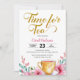 Celebre a noiva a ser com este chá de panela elegante e caprichoso! O design apresenta um belo fundo floral de aquarela com um delicado roteiro de brilho dourado "Hora do Chá". É perfeito para uma festa de chá de jardim ou para um almoço mais formal.