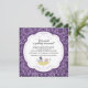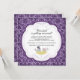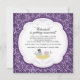 Comece seu evento com nosso Chá de panela Trendy & Modern apresentando um par de pássaros bonitos vestidos de roupa de casamento em um ninho de fundo de damascos roxo. Personalize nosso convite com suas informações de casamento e você está pronto para ir.