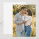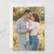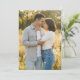 This wedding invitation features a warm, intimate photograph of two individuals standing closely together in an outdoor setting with blurred natural elements in the background. The color palette includes earthy tones such as light beige, white, and blue denim, creating a soft, inviting ambiance enhanced by golden hour lighting. The design captures a candid moment of affection, emphasizing genuine emotion through body language and expressions. With its realistic representation style and tender mood, this invitation is perfect for celebrating love and connection on your special day.