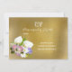 Um cartão RSVP de casamento elegante e na moda com tema pastel e ouro. O texto personalizável está em um roteiro elegante contra um fundo dourado. Esta placa apresenta um buquê de cluster de flores para casamentos, incluindo rosas cor-de-rosa pálidas, hydrangeas roxas, lillies de Calla branca e orquídeas brancas. Um design simples e elegante para o seu dia especial. Procure os convites correspondentes no mesmo estilo.