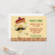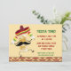 Um convite divertido para uma festa, evento temático mexicano ou celebração de Cinco de Mayo, apresenta um bobo dançando uma garrafa de tequila com bigode, vestindo um sombrero e tocando as maracas. Há uma fronteira tribal de design no fundo. Personalize o texto conforme desejado para atender ao seu evento.
