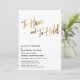 Para o cabeçalho destes cartões em negrito, eu usei uma fonte manuscrita casual e moderna para criar uma sobreposição de tipografia gráfica que diz "Para Ter e Para Segurar". Esta imagem foi adornada com um efeito de folha de ouro falso liso para uma atmosfera comemorativa. Preencha os espaços em branco do modelo com seus detalhes para personalizar o design. Todas as camadas permaneceram desbloqueadas para que você também possa clicar para personalizar ainda mais e reposicionar o texto ou até mesmo alterar tamanhos ou fontes. O fundo foi coberto com um padrão retrô repetitivo inspirado no Marrocos que foi adornado com o mesmo efeito de ouro falso. Outros cartões estão disponíveis na série que têm diferentes frases de cabeçalho de tipografia a ouro. Por favor, não hesite em entrar em contato para obter ajuda com a personalização.