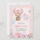 Balão de ar quente e selva bonito com aquarela e animais aparecem neste convite para chás de fraldas modernos para raparigas.