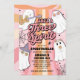 Um terceiro convite de aniversário do Dia das Bruxas Três Espíritos! Apresentando ilustrações bonitas de fantasmas hippie e tipografia retrô.