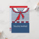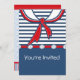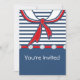 Navios ahoy para um bebé novo com este design adorável. Marinho e terno de marinheiro branco com vermelho e o colarinho branco e o laço, e botões bonitos. Texto customizável. Convites do chá de fraldas, obrigado cartão, botões, ornamento da lembrança, etiquetas e mais! Original de PinkInkArt.