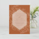 Cor maravilhosa e design geométrica fazem este convite atordoante. Este design apresenta um esquema monocromático de cores em lindos tons terra cotta, um lindo desenho botânico floral desenhado, e tipografia personalizada com uma borda geométrica.
