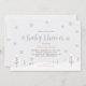 Celebre uma chá de fraldas com este belo convite da Terra Maravilha de inverno! Este design apresenta um roteiro de cinzas prateadas "Chá de fraldas" com cenário de floresta de inverno que inclui flocos de neve, árvores e aves. Convite perfeito para chá de fraldas de inverno prateado e cor-de-rosa ou água pulverizada para bebês.